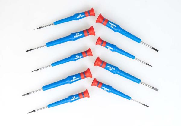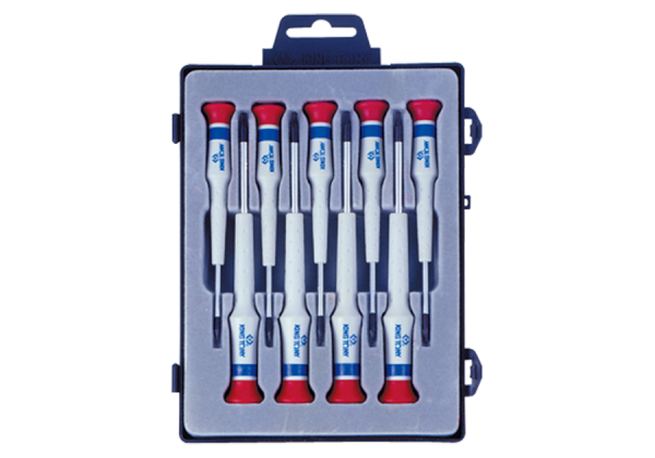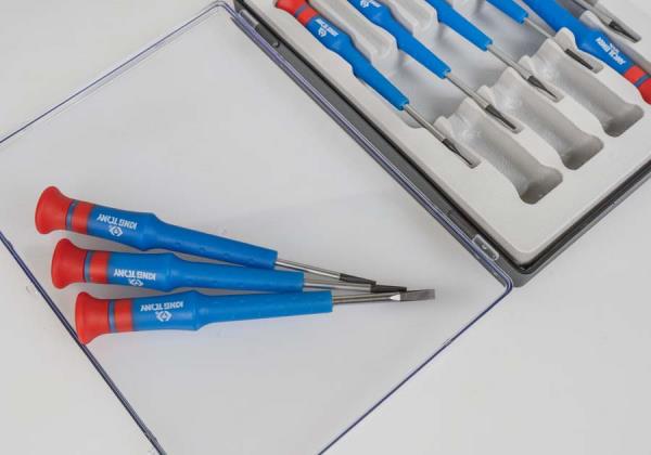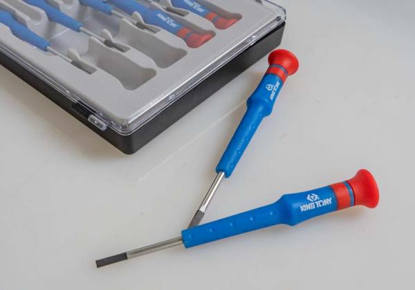 Zestaw płaskich wkrętaków precyzyjnych King Tony w plastikowym pudełku z uchwytem do powieszenia. Zestaw dla majsterkowiczów, do prac precyzyjnych. W zestawie znajduje się 9 śrubokrętów płaskich w rozmiarach: 0.8×40, 1.0×40, 1.5×40, 1.8×40, 2.0×40, 2.5×40, 3.0×40, 3.5×40, 4.0×40 Karta produktu – 32209MR