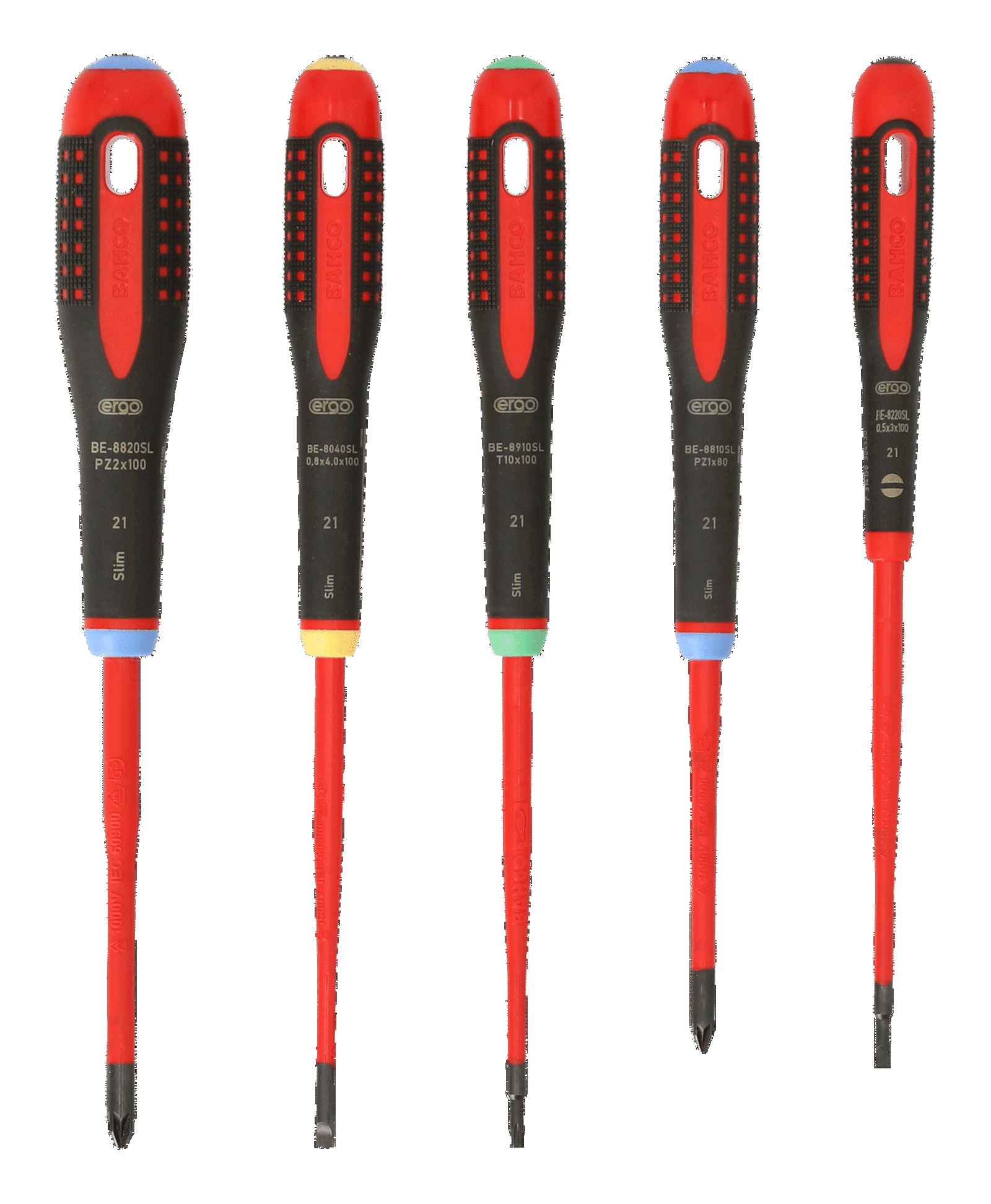 Zestaw wkrętaków VDE ERGO Slim płaskie, Pozidriv, TORX, 5 sztuk BAHCO